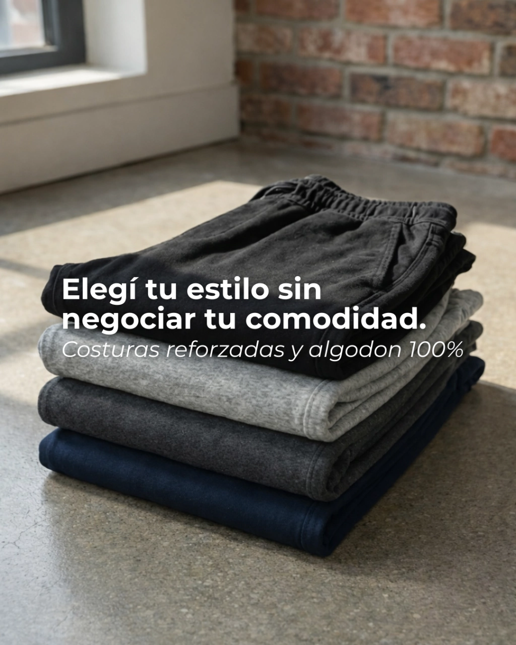 🔹 Joggers: Confeccionados en algodón rústico de alta calidad. Corte relajado para libertad de movimiento. Cintura elástica con cordón ajustable. Bolsillos laterales profundos ideales para objetos personales. Estilo atemporal y versátil, perfectos para uso diario, salidas casuales o estar en casa.